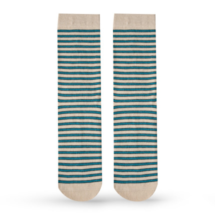 Stworzone dla komfortu i stylu, te klasyczne damskie skarpetki łączą stonowaną elegancję z delikatnym akcentem kolorystycznym. Główny beżowy odcień sprawia, że są uniwersalne i łatwe do połączenia z każdą garderobą – od biurowego stylu po codzienne domowe outfity. Cienka turkusowa linia dodaje świeżości i oryginalności, nie zaburzając harmonii klasycznego designu.