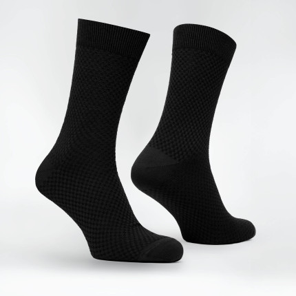 Jednorzędowa struktura gwarantuje czysty, stonowany wygląd bez zbędnych detali — idealny wybór do garderoby biznesowej lub na formalne okazje. Wzmocniona pięta i palce zwiększają trwałość, a miękki, bezszwowy ściągacz delikatnie utrzymuje skarpetkę na miejscu, nie uciskając kostki.