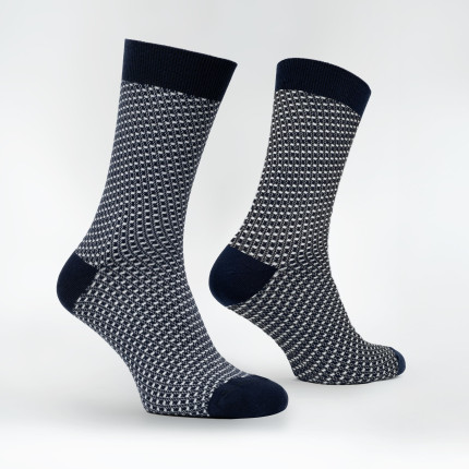 Męskie skarpety żakardowe z wyraźnym wzorem – połączenie klasyki i nowoczesnego stylu. Wykonane z wysokiej jakości bawełny z dodatkiem elastanu, zapewniają idealne dopasowanie i komfort przez cały dzień.