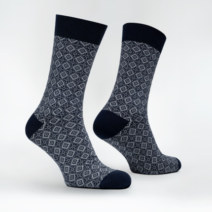 Męskie skarpety żakardowe to połączenie stylu, komfortu i jakości. Wykonane z miękkiej, oddychającej bawełny z dodatkiem elastycznych włókien, zapewniają idealne dopasowanie do stopy. Elegancki wzór żakardowy nadaje produktowi niepowtarzalności i sprawia, że doskonale uzupełnia każdą garderobę — od klasycznego garnituru po codzienny styl.